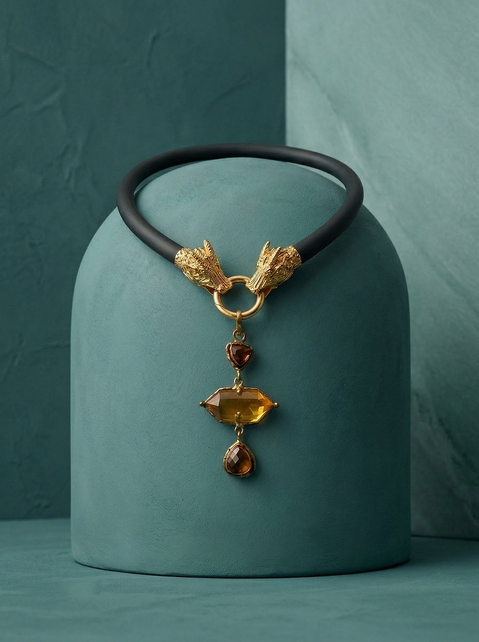The Gilded Guardians Citrine Triptych Choker