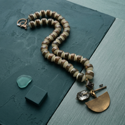 Finished with a high-quality antique copper toggle clasp, this necklace is designed to be a conversation starter. It is a bold, "quiet luxury" interpretation of the globetrotter aesthetic—sophisticated, soulful, and entirely unique.