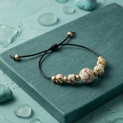 The Sahara Marble Kazuri Slider is a versatile centerpiece within the MHL Jewelry Designs heritage line. This piece features a curated gradient of authentic Kazuri beads, hand-shaped from the clay of Mount Kenya. Each bead is a one-of-a-kind canvas, showcasing intricate "caramel-on-cream" marbling and veined motifs that evoke the natural patterns of sun-bleached stone and wind-swept sands.