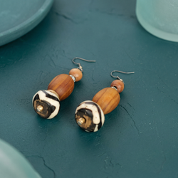 The focal point of each drop is a stunning, hand-patterned Mud bead—inspired by traditional mud-cloth and zebra motifs. The high-contrast cream and ebony tones are separated by delicate, silver-toned rondelle spacers, adding a touch of industrial shimmer to the earthy aesthetic. Suspended from elegant, minimalist fishhook wires, these earrings provide a graceful swing and a bold, worldly presence.