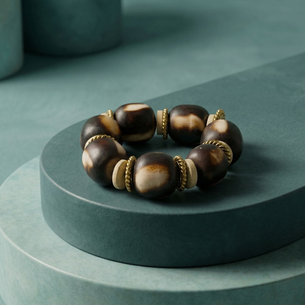 The Serengeti Rhythm Bracelet is a standout centerpiece in the MHL Jewelry Designs collection, designed for the woman who values bold, architectural organicism. This piece features a curated strand of substantial, high-contrast beads, each showcasing unique, hand-finished "ebony and ivory" swirls and portal-like motifs that reflect the raw, untamed patterns of the natural world.